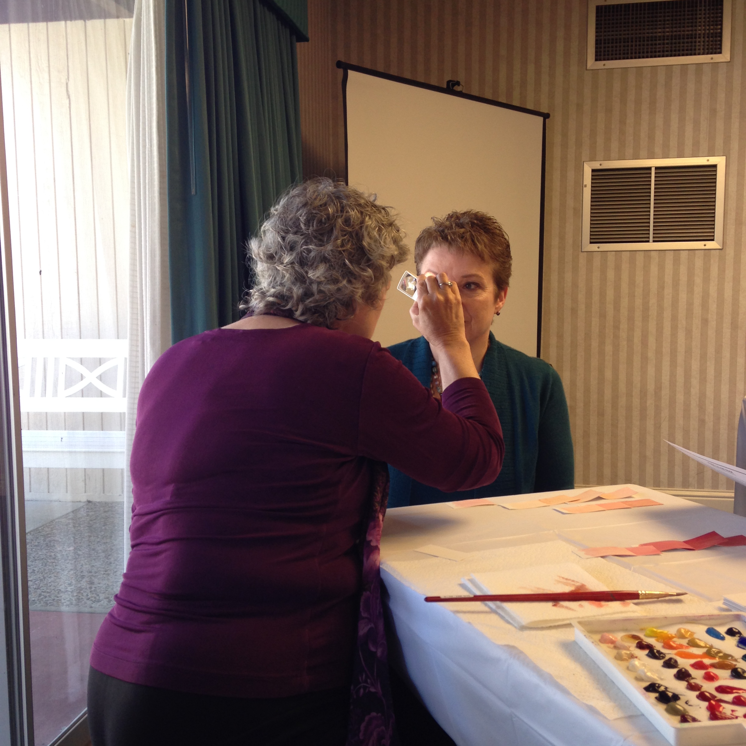 Next, Rochele paints the reds (shown below). She goes on to look closely at her client’s eyes.