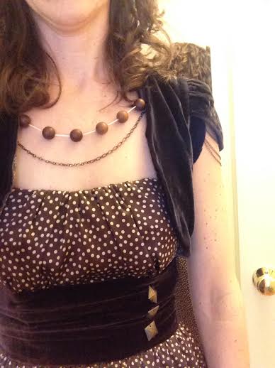 Here I’ve switched out the necklace on the front again. It’s actually a wooden bobble necklace Mara restrung and adapted to work with Got Your Back (the name of the arm/back piece).